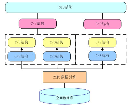 GIS應(yīng)用劃分成基于C/S結(jié)構(gòu)的應(yīng)用和基于B/S結(jié)構(gòu)的應(yīng)用兩種。前一種結(jié)構(gòu)適用于實(shí)現(xiàn)數(shù)據(jù)的采集、入庫、編輯和復(fù)雜的空間分析、專題制圖等應(yīng)用,主要是面向數(shù)據(jù)維護(hù)人員和專業(yè)分析人員使用的,以及為領(lǐng)導(dǎo)和專家提供輔助決策和分析之用;而后一種結(jié)構(gòu)比較適合于實(shí)現(xiàn)簡單的地圖發(fā)布、空間查詢等應(yīng)用,主要面向的是廣大的Internet用戶。由于這兩種結(jié)構(gòu)各有優(yōu)缺點(diǎn),而從指揮中心的總體角度來看,兩種結(jié)構(gòu)的應(yīng)用都是不可缺少的。系統(tǒng)的總體結(jié)構(gòu)將是一個同時包含了C/S和B/S兩種結(jié)構(gòu)的混合型、綜合型結(jié)構(gòu)。系統(tǒng)結(jié)構(gòu)如下: