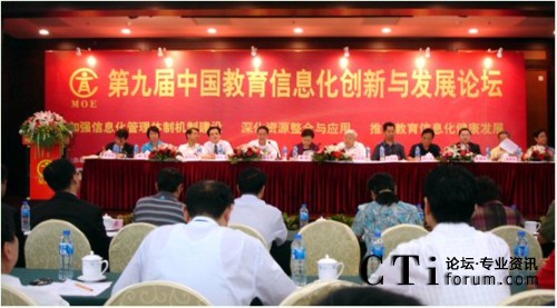 CTI論壇(ctiforum)07月16日消息: 2009年7月12日~7月13日,由教育部教育管理信息中心主辦的“第九屆中國教育信息化創(chuàng)新與發(fā)展論壇”在北京中苑賓館隆重召開。來自各級教育行政部門的相關(guān)領(lǐng)導(dǎo),各類學(xué)校的主管校長、信息化部門負(fù)責(zé)人參加了此次論壇,開幕式上教育部副部長魯昕同志發(fā)表了重要講話,為教育事業(yè)的改革與發(fā)展指明了方向。