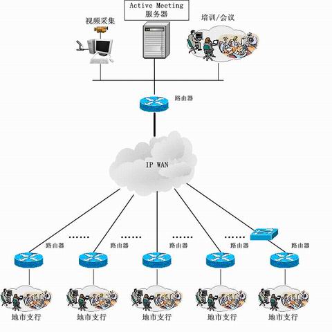 針對南京興業(yè)銀行的網(wǎng)絡(luò)和營業(yè)網(wǎng)點的分布情況,網(wǎng)動科技結(jié)合Active Meeting系統(tǒng)的特點,推薦了“網(wǎng)內(nèi)架Server,20個營業(yè)網(wǎng)點同步互動,后期冗余擴充”的方案,采用這種解決方案的優(yōu)點非常明顯: