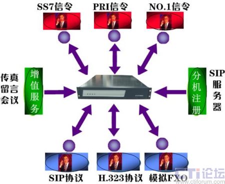 傳統(tǒng)信令協(xié)議方式包括N0.7信令、NO.1信令、ISDN-、 FXO(環(huán)路中繼)VOIP 信令協(xié)議包括SIP、H.323,同時(shí)支持多種協(xié)議/多種中繼的接入,不用增加、更換任何硬件設(shè)備和任何配件即可靈活地實(shí)現(xiàn)傳統(tǒng)交換機(jī)與軟交換網(wǎng)絡(luò)的無縫連接,為企業(yè)實(shí)現(xiàn)IP通信降低了門檻。