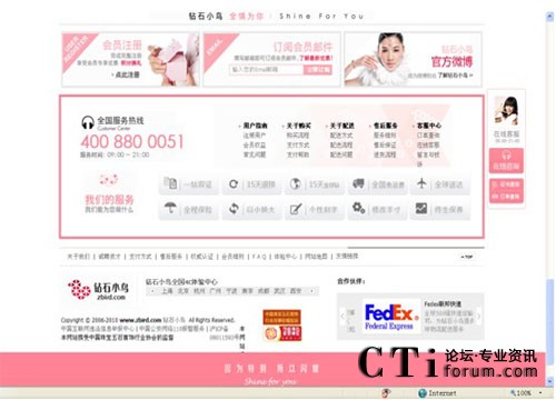 “鉆石小鳥”是國內(nèi)最早從事網(wǎng)絡鉆石銷售的專業(yè)珠寶品牌,一直致力于引領(lǐng)全新鉆石消費潮流,已經(jīng)成為中國網(wǎng)絡鉆石銷售領(lǐng)先品牌。從2002年的第一家鉆石網(wǎng)店到2004年在國內(nèi)首開基于OFFICE的鉆石體驗中心,直至今日的短短7年時間,“鉆石小鳥”迅速把“鼠標+水泥”的全新鉆石銷售模式從上海相繼帶到了北京、杭州、廣州、寧波、南京、成都、武漢、西安、青島,并立志在未來的2年內(nèi)覆蓋全國主要一線城市。