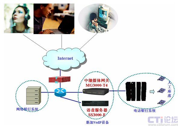 提高安全性,平臺(tái)位于防火墻后,不設(shè)公網(wǎng)地址:眾所周知,VoIP的通話必須要有一個(gè)在公網(wǎng)上的平臺(tái)來(lái)控制。但由于銀行方面的安全性要求,軟交換平臺(tái)必須位于防火墻之后,并且不能配置真實(shí)的公網(wǎng)IP。為了適應(yīng)此要求,高鴻公司的軟交換平臺(tái)支持NAT后的工作模式。