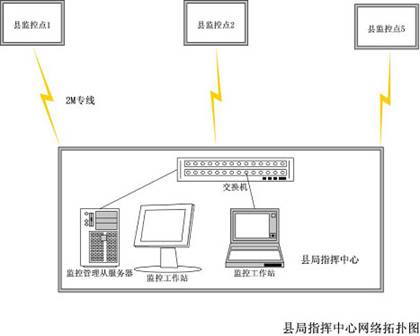 指揮中心設(shè)置一臺PC機安裝服務(wù)器端軟件作為監(jiān)控系統(tǒng)管理從服務(wù)器。同時,配置兩臺PC機安裝客戶端軟件作為監(jiān)控工作站。監(jiān)控管理員通過監(jiān)控工作站,實時監(jiān)視前端監(jiān)控點視頻圖像,遠(yuǎn)程控制一體化球機。
