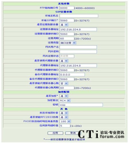 圖1 SIP協(xié)議參數(shù)設(shè)置圖例