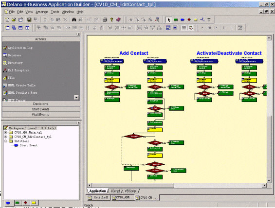 易虹eCRM解決方案中,利用易虹德龍的產(chǎn)品(Delano e-Business Interaction Suite)來(lái)實(shí)際和實(shí)現(xiàn)客戶服務(wù)與客戶關(guān)照流程。下圖是一個(gè)客戶關(guān)照流程的設(shè)計(jì)過(guò)程: