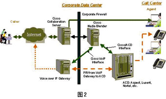 ----采用基于Internet的呼叫中心與電子商務(wù)網(wǎng)站相結(jié)合的體系結(jié)構(gòu),是實(shí)現(xiàn)競(jìng)爭(zhēng)優(yōu)勢(shì)的重要手段。通過將呼叫中心與Internet集成為一體,可以提供自我?guī)椭、協(xié)同合作、基于技能的路由、集成回叫、電子郵件路由、自動(dòng)電子郵件響應(yīng)、集成工作流程管理、預(yù)設(shè)的工作流程、動(dòng)態(tài)內(nèi)容整合等諸多功能,從而實(shí)現(xiàn)網(wǎng)絡(luò)客戶互動(dòng)。Cisco客戶互動(dòng)套件(CCIS)正體現(xiàn)了這一思想。