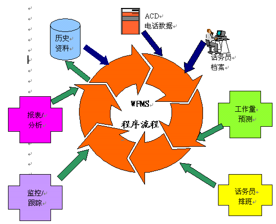 如上面所描述的WFMS流程,最初開始于歷史的電話信息、目前的ACD數(shù)據(jù)和服務(wù)代表的簡介。從這些綜合的信息,做出對工作量的預(yù)測,從而從本質(zhì)上決定了配備給呼叫中心的服務(wù)代表數(shù)量。了解了服務(wù)代表的需求數(shù)量,一個適用于任何時間段的工作時間表就可以產(chǎn)生了,包括每天的,每周的,每月的;谶@一點(diǎn),主管人就可以監(jiān)控服務(wù)代表的行為,追蹤來電,并分析不同種類的來電分組,做出應(yīng)對假定情景的方案,從而產(chǎn)生各種各樣的報告和圖表。