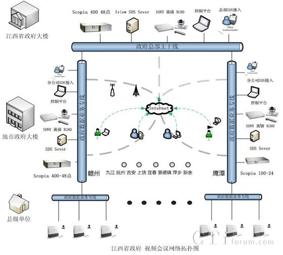 G50等相關(guān)設(shè)備。本套會議電視系統(tǒng)成功地實(shí)現(xiàn)了省、設(shè)區(qū)市、縣(區(qū))三級聯(lián)網(wǎng),此項(xiàng)目的部署,同時得到了RADVISION合作伙伴江西省電信公司的大力支持與協(xié)調(diào)。在項(xiàng)目簽約后3個月內(nèi)就完成了貨物調(diào)備、安裝、調(diào)試及測試、培訓(xùn)等一系列相關(guān)工作,受到了江西省政務(wù)信息網(wǎng)領(lǐng)導(dǎo)們的一致好評。