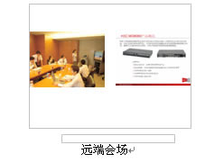 對于很多分會場通常只有1臺顯示設(shè)備的情況,H3C公司的視訊終端提供在1臺顯示設(shè)備上同時顯示"遠端的會場圖像+遠端膠片+本地會場圖像",顯示模式可通過終端遙控器靈活選擇:遠端圖像、遠端膠片、遠端圖像+遠端膠片、,實際顯示效果如下圖所示: