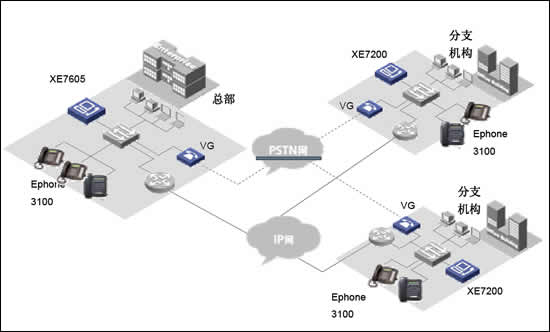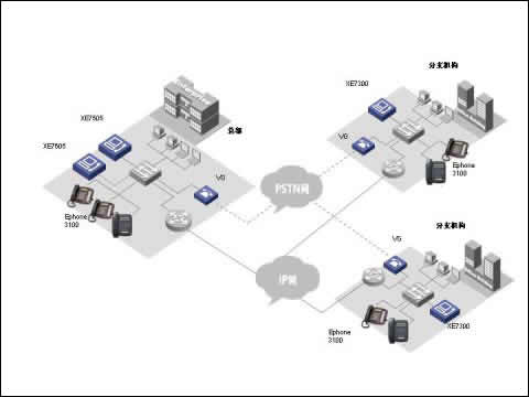 華為三康的XE7000IP語音解決方案是為企業(yè)提供融合的通信解決方案,在同一網(wǎng)絡(luò)上融合語音、數(shù)據(jù)和視頻信息,以滿足其日益增長的企業(yè)通信的要求從而解決了現(xiàn)代企業(yè)面對的傳統(tǒng)PBX語音服務(wù)和IP網(wǎng)絡(luò)數(shù)據(jù)服務(wù)分離問題。華為三康的XE7000IP語音解決方案構(gòu)建在企業(yè)現(xiàn)有IP數(shù)據(jù)網(wǎng)絡(luò)之上,以集中式管理方式提供企業(yè)全網(wǎng)范圍內(nèi)的呼叫控制以及管理,業(yè)務(wù)控制和信令分離使得用戶在管理上更加簡單透明,極大的節(jié)省了日常維護(hù)費用和降低了維護(hù)難度。并使得客戶可以在任意地方實現(xiàn)IP語音數(shù)據(jù)接入,使得企業(yè)分布式辦公的不再因為物理空間隔離而無法實現(xiàn)。