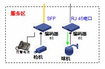 道路沿線監(jiān)控:采用EPON組網(wǎng),路況監(jiān)控球機接入前端編碼器,多個編碼器通過一根EPON光纖接入到中心交換機上,布線方便節(jié)省光纖資源。編碼器內(nèi)置交換機功能可以接入IP報警電話方便公路報警。還可以將支持IP接口的可變信號板和氣象站直接接入編碼器交換機端口,實現(xiàn)一網(wǎng)多用,降低整體網(wǎng)絡成本。