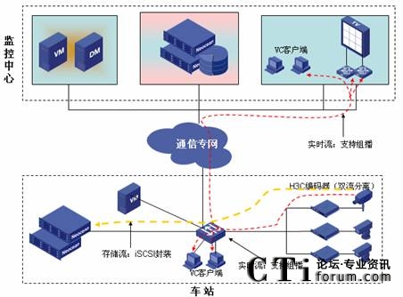 由此可見,視頻監(jiān)控IP化是軌道交通行業(yè)應(yīng)用發(fā)展必然,實際上,北京、成都、杭州、蘇州等城市新建的地鐵視頻監(jiān)控系統(tǒng),基本上都采用了IP技術(shù)解決方案。在杭州華三通信技術(shù)有限公司(簡稱:H3C)參與的杭州地鐵1號線、蘇州地鐵1號線等的CCTV項目中,拋棄了傳統(tǒng)的模擬矩陣,采用了H3C iVS IP視頻監(jiān)控解決方案,在控制中心與車站都可對前端圖像可以靈活進行控制,同時車站的管理工作站的用戶只能管理本站內(nèi)的視頻監(jiān)控圖像和進行圖像查詢,在控制中心可以進行所有車站的圖像管理。H3C iVS IP視頻監(jiān)控系統(tǒng)支持精確到秒級的高效檢索,當出現(xiàn)緊急情況時,車站/控制中心都能夠即時回放1分鐘之前的事故現(xiàn)場圖像。H3C的方案采用了視頻流和控制流相分離的NGN架構(gòu),視頻流不用經(jīng)過傳統(tǒng)的流媒體服務(wù)器轉(zhuǎn)換,直接由前端編碼器發(fā)起iSCSI流寫入到后端的IP SAN磁盤陣列中,滿足端到端的“0”瓶頸視頻圖像存儲。在視頻監(jiān)控系統(tǒng)中的任何設(shè)備出現(xiàn)意外事件時如設(shè)備故障、設(shè)備掉電等,可以保證掉電之前的歷史圖像完整性,為分析事故原因提供依據(jù)。