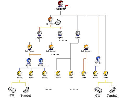 Admin為系統(tǒng)管理員,下有各個(gè)級別的賬號。除User外,其它均可視為各級代理。最低級別是User,只有在User下才能開啟終端設(shè)備賬號。