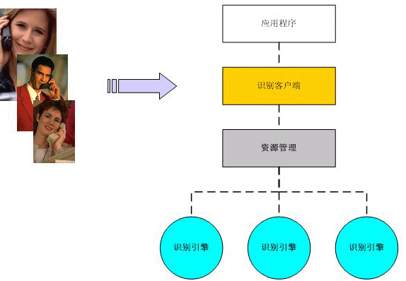 一個(gè)語(yǔ)音識(shí)別系統(tǒng),主要包含有語(yǔ)音識(shí)別的客戶(hù)端模塊、資源管理模塊、識(shí)別引擎以及與應(yīng)用相對(duì)應(yīng)的應(yīng)用程序。