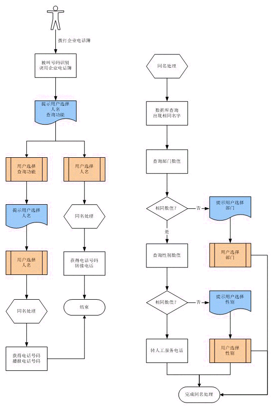 當(dāng)電話(huà)簿記錄中出現(xiàn)同名時(shí),可以定義同名的區(qū)分條件,如不同部門(mén),不同性別等。在語(yǔ)音識(shí)別時(shí),根據(jù)區(qū)分條件提示主叫選擇。