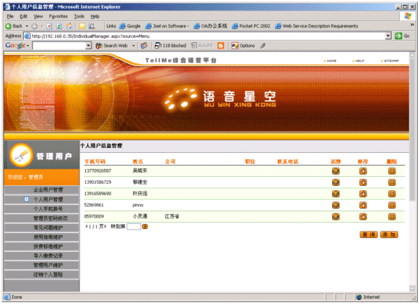 結(jié)合平臺(tái)座席與個(gè)人語(yǔ)音電話(huà)本實(shí)現(xiàn)給注冊(cè)用戶(hù)實(shí)現(xiàn)個(gè)人秘書(shū)服務(wù)。