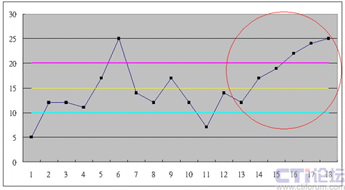 6、9、12法則是一個(gè)非常有威力的口訣,讓第一線的班長(zhǎng)都可以從控制圖中,輕易的判斷是否有發(fā)生了特殊原因。