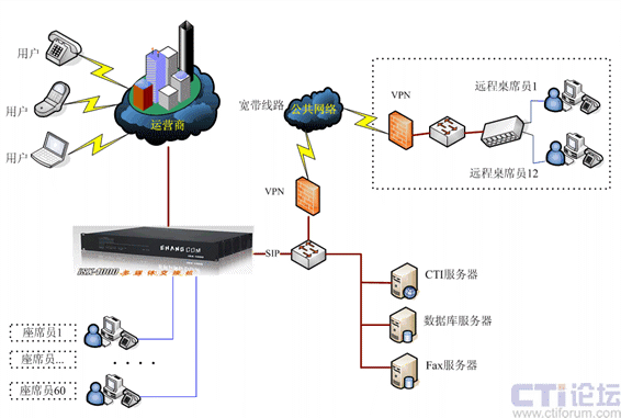 浙江電信外呼系統(tǒng)首期為240線接入,60個坐席,12個遠程IP坐席,隨著業(yè)務(wù)的擴展模塊化增加系統(tǒng)容量并支持呼入及企業(yè)會議功能。