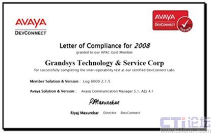2008年7月 —Grandsys(宏盛高新技術有限公司)宣布其自創(chuàng)品牌[Grandsys LOG8000 錄音與質(zhì)檢解決方案]正式通過AVAYA DevConnect 的認證。Grandsys正是全球為數(shù)不多的已經(jīng)通過該項認證的AVAYA 合作伙伴之一,包含知名廠家Nice及Verint等,這代表Grandsys的技術已達到國際知名廠家的水平, 國內(nèi)客戶也因此有機會享受到最優(yōu)質(zhì)的產(chǎn)品及服務。