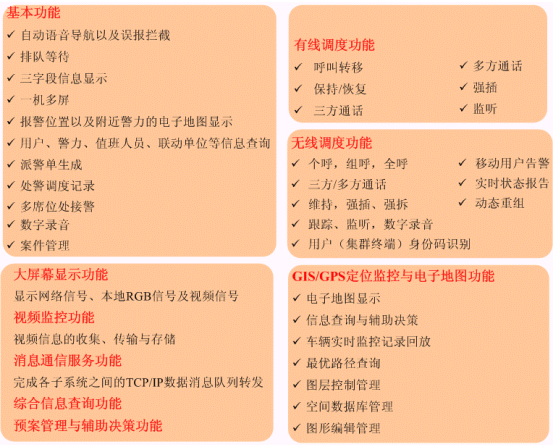 集中管理控制、分級處理、多業(yè)務(wù)處理功能;信息靈敏、資源共享、指揮有力、規(guī)范有序。