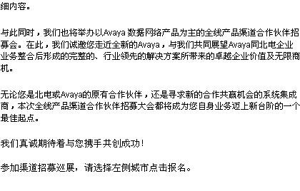 Avaya/Nortel整合產(chǎn)品線(xiàn)渠道招募會(huì)10城市