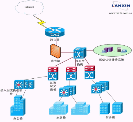 系統(tǒng)部署于解放軍后勤工程學(xué)院網(wǎng)絡(luò)中心機(jī)房,通過(guò)與交換機(jī)的配合實(shí)現(xiàn)用戶(hù)的安全認(rèn)證、多樣計(jì)費(fèi)及有效管理。此次項(xiàng)目的順利穩(wěn)定運(yùn)行,得到了校方及電信方對(duì)藍(lán)信產(chǎn)品的一致認(rèn)可。