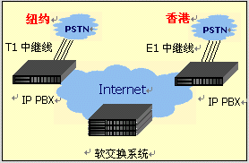 分布在各地的GV IPPBX,可以作為IP PBX平臺(tái)的網(wǎng)關(guān),所有注冊(cè)在IP PBX平臺(tái)下的話(huà)機(jī)可以分別通過(guò)各地的IP PBX網(wǎng)關(guān)落地,撥打普通電話(huà),自由選擇最優(yōu)惠的話(huà)費(fèi)平臺(tái)。一臺(tái)GV IPPBX可以支持多達(dá)4路E1,等于120條外線(xiàn)。 |