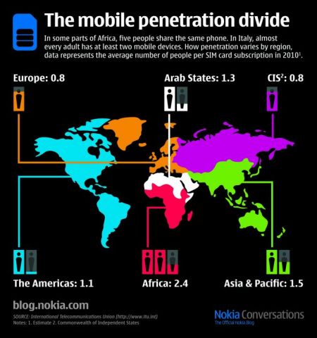 諾基亞《手機(jī)世界分布圖》顯示歐洲普及率最高