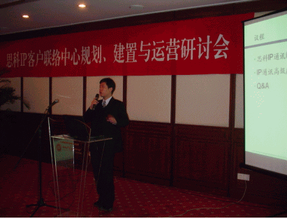 2點(diǎn)整,主持人宣布會(huì)議正式開始。首先是正音科技公司執(zhí)行副總秦裕農(nóng)先生致開幕詞。秦先生從2000多年前的周幽王烽火戲諸侯娓娓道來,一直講到IP技術(shù)在音頻、視頻上的應(yīng)用,為大家生動(dòng)形象地描述了通訊技術(shù)發(fā)展的歷程。在演講的最后,秦先生指出了一個(gè)客戶聯(lián)絡(luò)中心所應(yīng)該具備的特性:"在這個(gè)客戶聯(lián)絡(luò)中心里,客戶應(yīng)該能夠隨時(shí)隨地的通過電話、傳真、郵件、網(wǎng)絡(luò)電話、文字聊天、web協(xié)同等各種各樣的方式,第一時(shí)間找到企業(yè),解決他們的問題;在這個(gè)客戶聯(lián)絡(luò)中心里,企業(yè)能夠廉價(jià)地把分布于全國各地的服務(wù)資源聯(lián)系起來,進(jìn)行統(tǒng)籌管理,統(tǒng)一為客戶提供服務(wù);在這個(gè)客戶聯(lián)絡(luò)中心里,企業(yè)可以隨時(shí)把一個(gè)空閑的客戶服務(wù)人員調(diào)整為電話銷售人員,而不用去修改復(fù)雜系統(tǒng)設(shè)置;在這個(gè)客戶聯(lián)絡(luò)中心里,任何一個(gè)可以接入互聯(lián)網(wǎng)的員工,不管他身在地球的哪一個(gè)角落,都可以隨時(shí)隨地的接入系統(tǒng),變成一個(gè)坐席,為客戶提供專業(yè)的服務(wù)。"秦先生描述的這個(gè)完美的客戶聯(lián)絡(luò)中心立即博得了陣陣掌聲,同時(shí)也引起了與會(huì)者的極大興趣,如何才能實(shí)現(xiàn)這個(gè)猶如夢(mèng)中的呼叫中心呢?"相信通過今天的研討會(huì),各位會(huì)得到了一個(gè)滿意的答案",秦先生最后自信的向大家保證。
