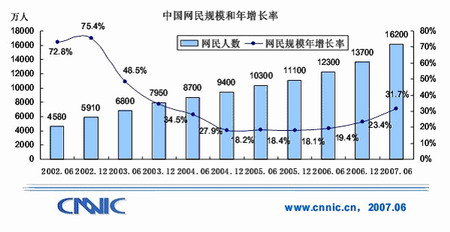 1、上網(wǎng)人數(shù)持續(xù)發(fā)展,截止到2007年6月底,已達(dá)1.62億。手機(jī)上網(wǎng)人數(shù)已達(dá)4430萬,而上一年這個數(shù)字為1700多萬。