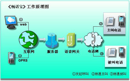 具體來講就是在手機(jī)里安裝“暢話寶”應(yīng)用軟件(在計算機(jī)桌面提供web客戶端),該軟件帶有通信錄和觸發(fā)GPRS的功能,可以通過無線互聯(lián)網(wǎng)將電話號碼發(fā)送到平臺,通過PSTN發(fā)起通話(2方或多方)。這個手機(jī)客戶端軟件,可無縫對接到固網(wǎng)增值業(yè)務(wù)平臺上(多方通信平臺)?蛻舳塑浖陨頂y帶有通信錄功能,調(diào)用方便。部分機(jī)型可調(diào)用手機(jī)本身的通信錄。