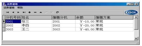 催繳調度表中的%欠費%,用戶可以從計費系統(tǒng)的月報表中提出(用戶輸入月份,自動根據催繳電話取過來);也可由用戶再次修改(針對所欠不是一個月的費用),但“刷新”又從從計費系統(tǒng)的月報表中更新數據。