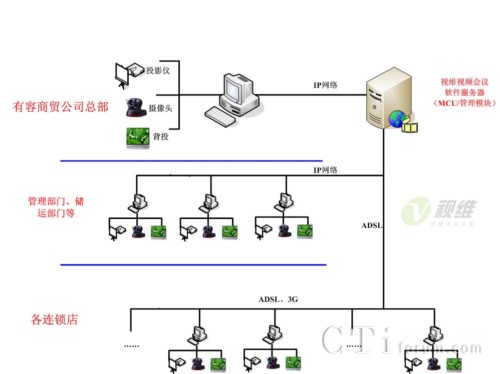 - 高性?xún)r(jià)比,1080P高清視頻會(huì)議系統(tǒng):充分利用有容商貿(mào)與各區(qū)域連鎖店現(xiàn)有的網(wǎng)絡(luò)資源和辦公設(shè)備,平民身價(jià)的視維高清視頻會(huì)議軟件系統(tǒng),以低廉的成本實(shí)現(xiàn)大規(guī)模的高清應(yīng)用。