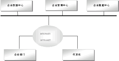 企業(yè)上網(wǎng)機附加電子商務(wù):通過支付網(wǎng)關(guān)與金融機構(gòu)建立聯(lián)系;通過認證網(wǎng)關(guān)與法律機構(gòu)建立聯(lián)系;通過中間件與郵件系統(tǒng)與其它企業(yè)建立聯(lián)系。