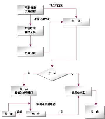 整個網(wǎng)絡(luò)采用只在集中受理中心設(shè)立一個集中監(jiān)控系統(tǒng),負責監(jiān)控全網(wǎng)的客戶業(yè)務(wù)、服務(wù)、技術(shù)支持和投訴等等業(yè)務(wù),該系統(tǒng)基于事件管理的思想,提供包括創(chuàng)建、解決、分配、反饋、跟蹤、回訪等節(jié)點在內(nèi)的閉環(huán)處理模式。例如系統(tǒng)可以根據(jù)客戶反映問題的時間以及緊急程度,按照系統(tǒng)約定的處理時限對處理過程實時跟蹤和記錄,當處理超時時回自動給出報警信息,提示相關(guān)的操作人員及主管人員。同時根據(jù)約定還可以將受理的問題按照約定的方式自動發(fā)送到相關(guān)的處理部門,由處理部門進行處理。