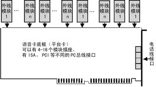 杭州三匯公司針對語音卡一體化設(shè)計(jì)與通用模塊化設(shè)計(jì)中各自所存在的優(yōu)缺點(diǎn),提出了全新的模塊化概念:采用完全自行設(shè)計(jì)的模塊,各類模塊具有相同引腳結(jié)構(gòu),使語音卡成為不同類型通道的平臺,可以搭載不同數(shù)量和類型的模塊,使用戶可以根據(jù)系統(tǒng)要求,任意配置語音上通道類型和數(shù)量,圖3描述了三匯語音平臺卡的系統(tǒng)結(jié)構(gòu)。