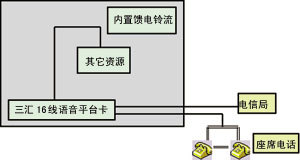 這一思路集合了一體化和模塊化各自的優(yōu)勢,克服了兩者的不足之處,使用三匯語音平臺卡構(gòu)成的CIT系統(tǒng)具有更大的靈活性。圖4所示為該語音平臺卡構(gòu)筑一個(gè)8外線+3座席的CTI系統(tǒng),用戶在通道數(shù)不大于16線情況下,可隨意增加外線或內(nèi)線通道而無需增加板卡。