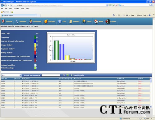 該公用事業(yè)部門很快發(fā)現(xiàn)他們所管理的呼叫量出現(xiàn)很大的變化,尤其是在賬單的支付、信用卡的處理和賬戶史的查詢等方面。2007年1月,公用事業(yè)機構(gòu)的OnCall系統(tǒng)所管理的報告日志顯示有2,694個呼叫,很多天都顯示