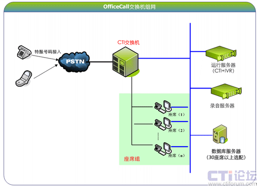 OfficeCall目前主要支持AVAYA IPO,阿爾卡特OXO等中小型的交換機,與這些中小型交換機組網(wǎng),共同建設100座席以下呼叫中心系統(tǒng)整體解決方案,通過簡化安裝配置和系統(tǒng)維護,縮短系統(tǒng)上線時間,降低后期系統(tǒng)維護難度,減少系統(tǒng)的投資預算,為中型規(guī)模的呼叫中心系統(tǒng)提供更適合的解決方案。