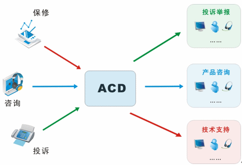 我們目前接入的媒體有很多,不再是傳統(tǒng)的單一電話接入方式,還包括網(wǎng)絡(luò)呼入、E-mail呼入,短信、留言等,所有的媒體接入都通過統(tǒng)一的排隊路由,以最優(yōu)化的策略分配給最適合的座席人員;并且,不同的媒體類型具有不同的優(yōu)先級,ACD(自動話務(wù)分配)根據(jù)優(yōu)先級和設(shè)定的排隊算法,自動實現(xiàn)媒體的統(tǒng)一智能路由。