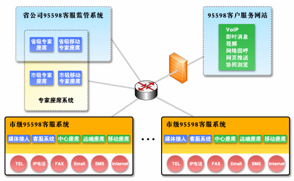 在電力客戶服務(wù)中心系統(tǒng)解決方案中,我們采用了更加先進(jìn)的第四代呼叫中心系統(tǒng)作為客服系統(tǒng)的平臺?梢詫崿F(xiàn)的客戶聯(lián)絡(luò)方式已經(jīng)不僅僅局限于傳統(tǒng)的語音和傳真的呼叫形式,網(wǎng)絡(luò)電話、網(wǎng)絡(luò)傳真、Email、短消息、即時消息、互聯(lián)網(wǎng)應(yīng)用等都是與客戶聯(lián)絡(luò)的重要方式,涉及到的媒體載體也不僅是PSTN,還有基于VoIP技術(shù)的現(xiàn)代網(wǎng)絡(luò)、無線網(wǎng)絡(luò)等;也就是說第四代呼叫中心系統(tǒng)是一個融合網(wǎng)絡(luò)、語音、數(shù)據(jù)庫、視頻和安全技術(shù)的綜合信息服務(wù)平臺。整個95598電力客戶服務(wù)系統(tǒng)是由呼叫中心子系統(tǒng)和業(yè)務(wù)處理子系統(tǒng)共同構(gòu)成。