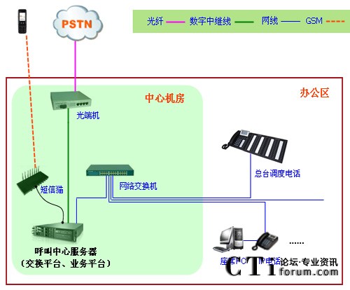 維佳元創(chuàng)呼叫中心系統(tǒng)采用暢信達(dá)通信呼叫中心交換平臺與業(yè)務(wù)平臺,采用1路E1數(shù)字中繼線接入,對外公布一個400號碼與10多個辦公電話號碼,采用IP話機作為總臺調(diào)度電話、座席電話與辦公電話,系統(tǒng)架構(gòu)形式如下:
