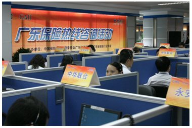 2007年6月23日下午,由中國電信廣東公司和廣東保險(xiǎn)監(jiān)督管理局合作舉辦的4008991288廣東保險(xiǎn)業(yè)電話咨詢熱線活動(dòng)在中國電信廣州分公司客戶服務(wù)中心舉行。省保監(jiān)局、省保險(xiǎn)協(xié)會(huì)等保險(xiǎn)監(jiān)管行業(yè)人員進(jìn)行現(xiàn)場監(jiān)聽,廣東省內(nèi)39家保險(xiǎn)公司的44位總經(jīng)理親自接聽市民的咨詢或投訴,其他保險(xiǎn)資深專家接受市民保險(xiǎn)業(yè)務(wù)咨詢。兩小時(shí)的熱線活動(dòng)成功接通1122個(gè)電話,并當(dāng)場解決和答復(fù)856個(gè)咨詢和投訴問題。