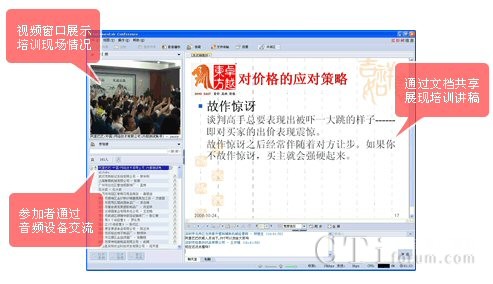 高清晰的視頻,可以讓網(wǎng)絡(luò)培訓(xùn)用戶感受培訓(xùn)現(xiàn)場氣氛。文檔共享和音頻可以讓用戶感受培訓(xùn)人員的聲情并茂。同時用戶可以在網(wǎng)絡(luò)培訓(xùn)系統(tǒng)的答疑區(qū)提出自己的問題,和培訓(xùn)人員進(jìn)行互動。