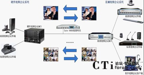 通過H.323會議網(wǎng)關(guān),把polycom終端信號接到新視頻會議系統(tǒng)中,保護(hù)原有投資,建立大規(guī)模一體化視頻會議的應(yīng)用。