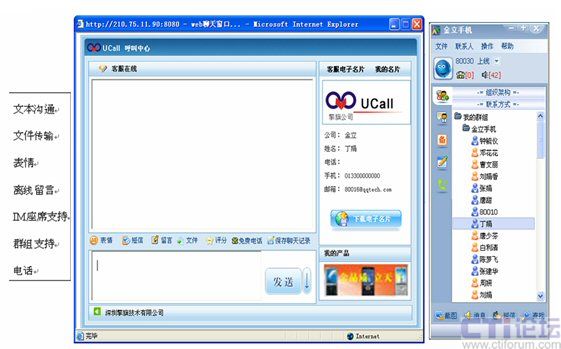 支持包括IM(即時(shí)通訊)、短信等跟語(yǔ)音的融合。座席人員可以同時(shí)使用IM、電話、短信等跟用戶(hù)溝通。