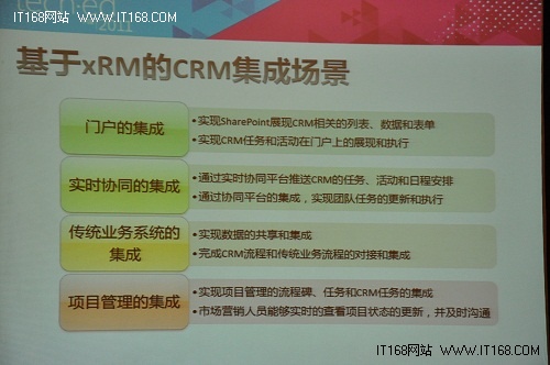 而基于xRM的CRM集成則包括門戶的集成、實(shí)時協(xié)同的集成、傳統(tǒng)業(yè)務(wù)系統(tǒng)的集成和項(xiàng)目管理的集成。