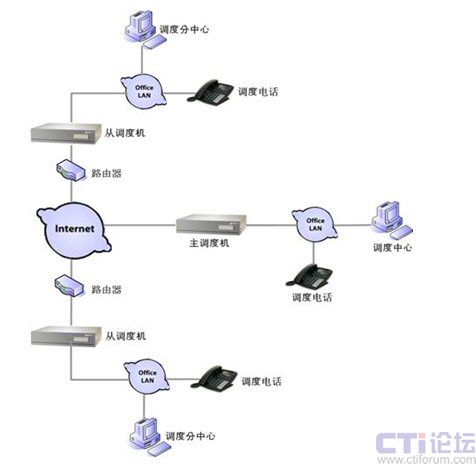 在總部放置一臺(tái)主調(diào)度機(jī)作為整個(gè)調(diào)度系統(tǒng)的核心設(shè)備――主調(diào)度機(jī)可在管理從調(diào)度機(jī)的同時(shí),完成自身的調(diào)度系統(tǒng)功能;在各分支節(jié)點(diǎn)放置從調(diào)度機(jī),使得每一個(gè)分支都擁有獨(dú)立的調(diào)度系統(tǒng),互不影響;從調(diào)度機(jī)通過注冊(cè)到主調(diào)度機(jī)上,可以把分支的調(diào)度情況實(shí)時(shí)上傳給主調(diào)度機(jī),實(shí)現(xiàn)總部的統(tǒng)一管理。若任何一個(gè)從調(diào)度機(jī)出現(xiàn)問題,其他調(diào)度系統(tǒng)不會(huì)受到影響;同樣,如果主調(diào)度機(jī)出現(xiàn)問題,從調(diào)度系統(tǒng)仍能照常運(yùn)行,等主調(diào)度機(jī)修復(fù)后再恢復(fù)連接,上報(bào)調(diào)度信息。