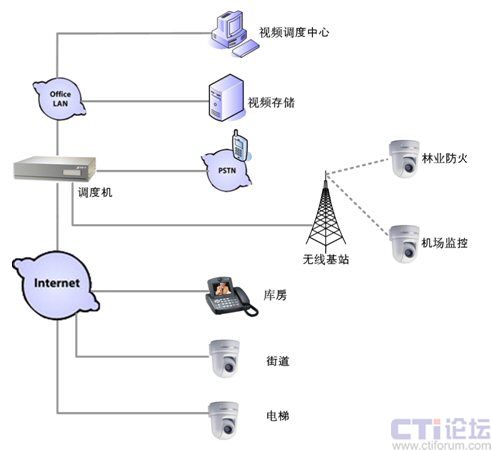 在有人職守的庫(kù)房或生產(chǎn)線,可以采用視頻話機(jī)作為視頻調(diào)度終端,在其他無(wú)人職守的監(jiān)控點(diǎn),安裝帶音響的攝像頭或云臺(tái),配合調(diào)度機(jī)實(shí)現(xiàn)視頻監(jiān)控調(diào)度。