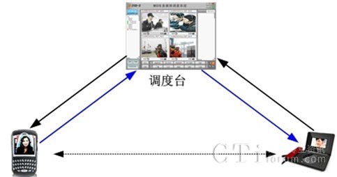 當(dāng)指揮人員需要讓兩個視頻設(shè)備實(shí)現(xiàn)點(diǎn)對點(diǎn)視頻通信時,如兩個終端是同一型號設(shè)備,可直接進(jìn)行視頻通信,如兩個不同型號的視頻設(shè)備需要進(jìn)行視頻通信,可由調(diào)度臺調(diào)度兩個視頻設(shè)備,然后通過視頻轉(zhuǎn)發(fā)功能實(shí)現(xiàn)兩個不同視頻設(shè)備的視頻通信。